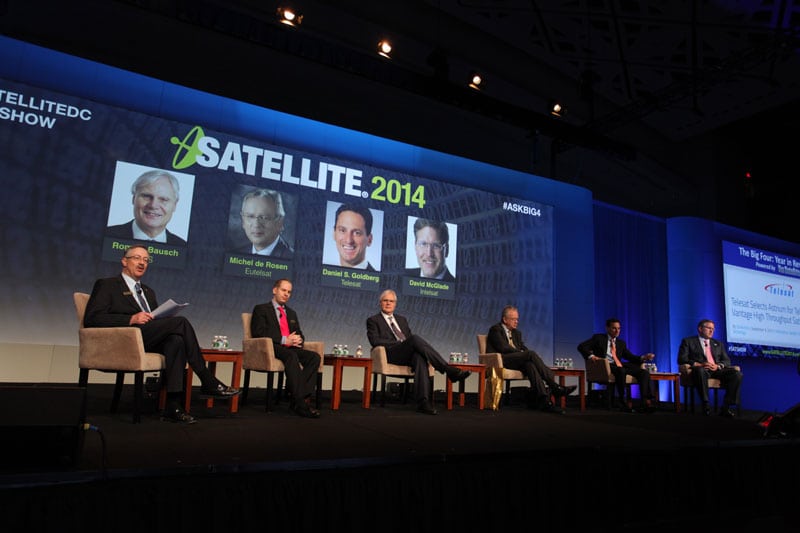 [Via Satellite 03-11-14] Chief executives from the satellite industry’s largest players kicked off SATELLITE 2014 sharing the opportunities and challenges ahead. The overall tone from the leaders of Eutelsat, Intelsat, SES and Telesat was upbeat, and with good reason: many of their fleets are growing and new waves of innovation by SpaceX.