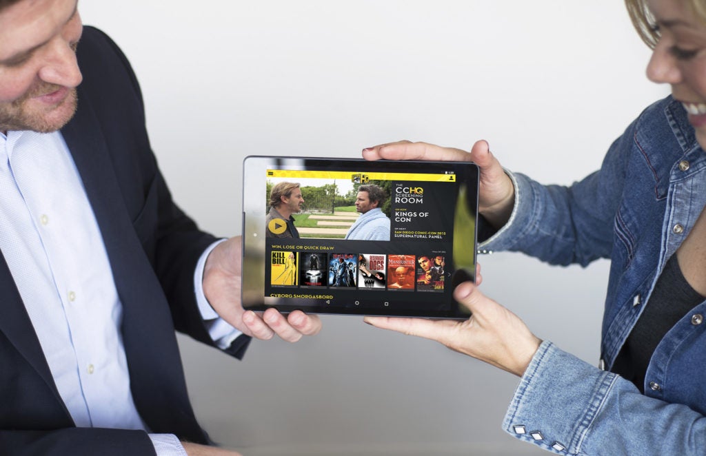 Seth Laderman, EVP and GM of Comic-Con HQ, left and IBM Project Manager Terri Dillon view the new Comic-Con HQ subscription video on-demand platform. Photo: Mike Palma/IBM