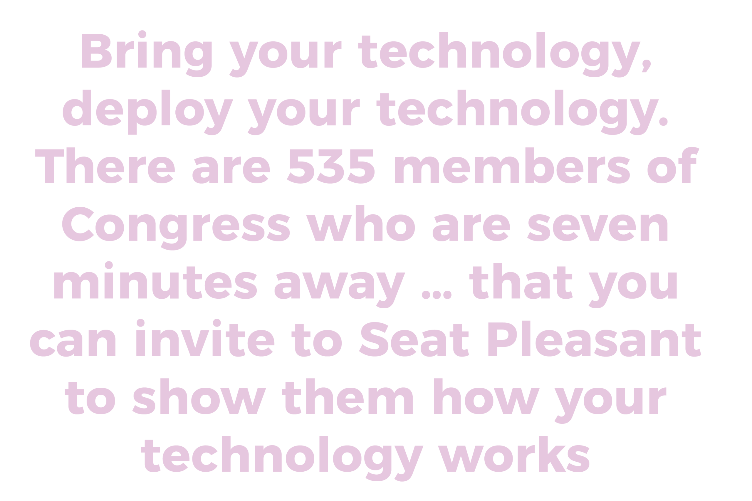 He urged providers to look at Seat Pleasant as a shop window. “View us as the testbed of innovation,” he said. “Bring your technology, deploy your technology. There are 535 members of Congress who are seven minutes away … that you can invite to Seat Pleasant to show them how your technology works.”