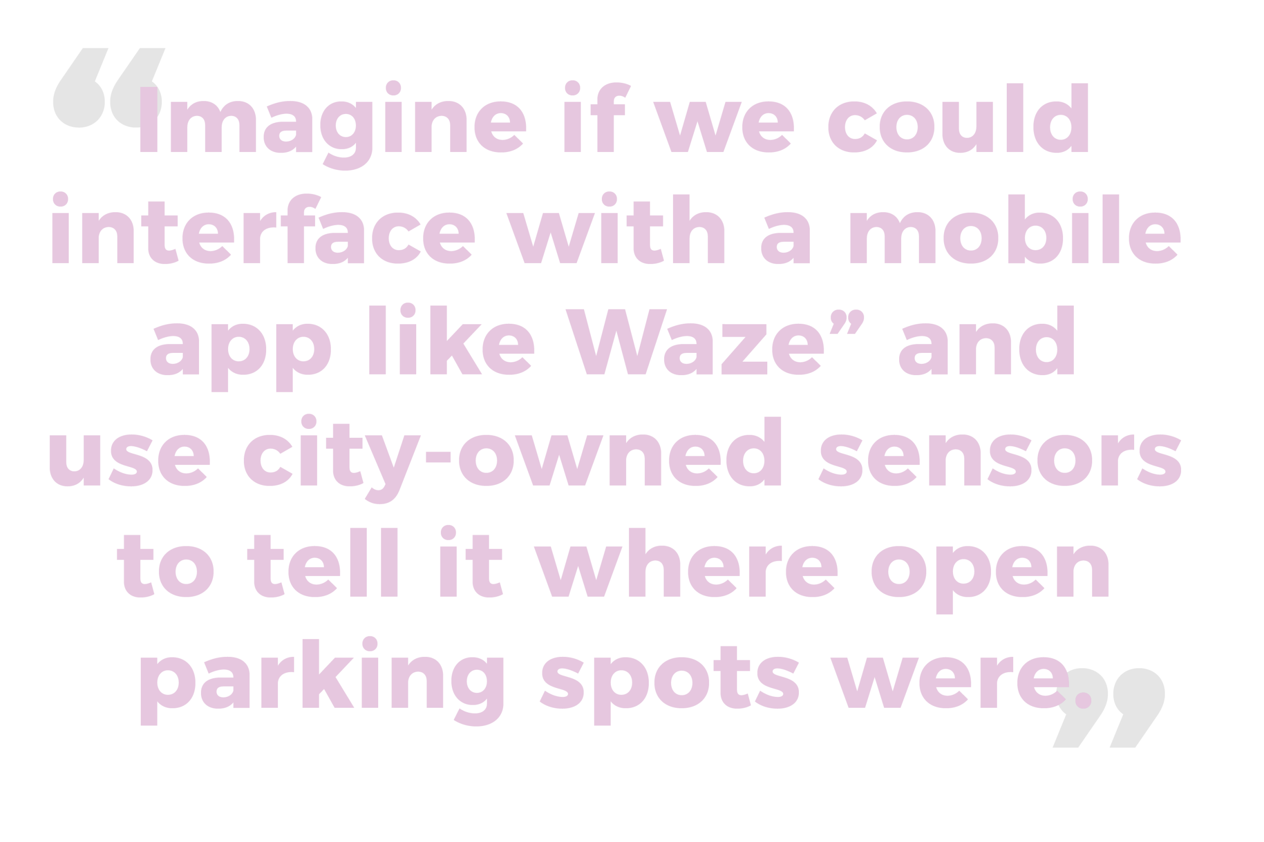 The City of Alexandria, Virginia’s Transportation Chief Bob Garbacz described how the city was installing license plate reading technology to better enforce parking laws. But that was just the beginning, he said, “Imagine if we could interface with a mobile app like Waze” and use city-owned sensors to tell it where open parking spots were. A partnership with a real time traffic monitoring and navigation app like that could be very powerful, Garbacz said. “Not only could you ask for directions to get somewhere, it could tell you where to park when you got there — and if you’re looking for the lowest rate, maybe it could do that too.”