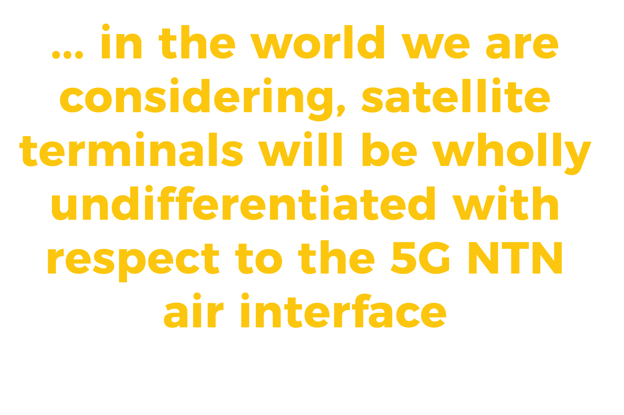 First, to be clear, in the world we are considering, satellite terminals will be wholly undifferentiated with respect to the 5G NTN air interface. 5G convergence will bring down the cost of satellite handsets and terminals, because the development cost of modem chipsets and other components will be amortised over a much larger number of subscribers. Satellite operators will rely increasingly upon the wider 5G ecosystem to deliver ever more commoditized core network and terminals; and redeploy their investment capital elsewhere. A variety of multiband radio front ends and antennas will be optimised for different satellite services such as Internet of Things [IoT], voice/messaging, low-cost broadband, and other services, but much of the technology that was proprietary to satellite network operators, i.e. terminals and secure networks, may be accessed through an extended 5G ecosystem. Satellite operators will have to concentrate on other metrics to differentiate themselves from competitors.