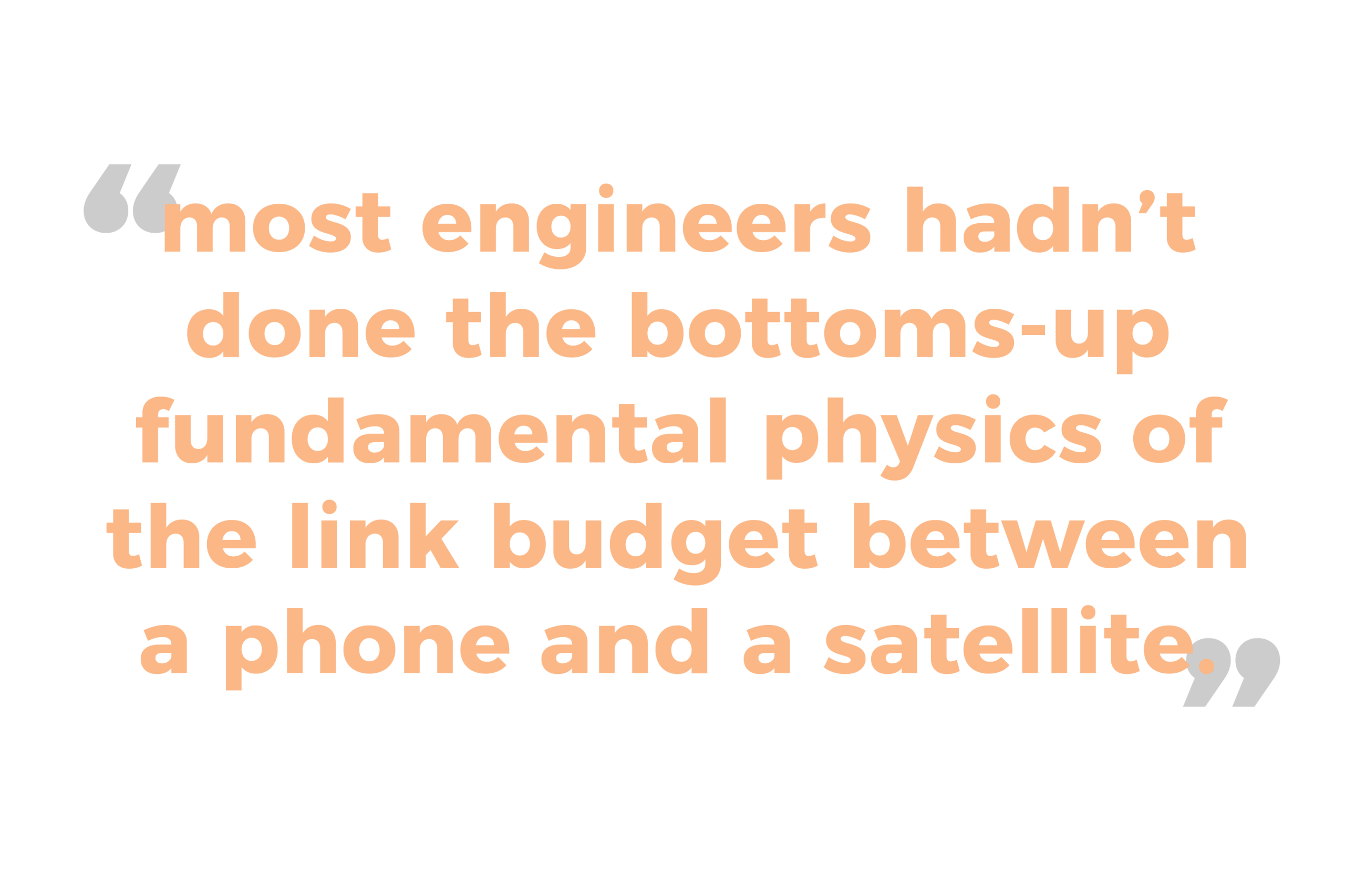 At first, Miller said, even Speidel thought the technology was impossible to achieve, but they realized that “most engineers hadn’t done the bottoms-up fundamental physics of the link budget between a phone and a satellite.”