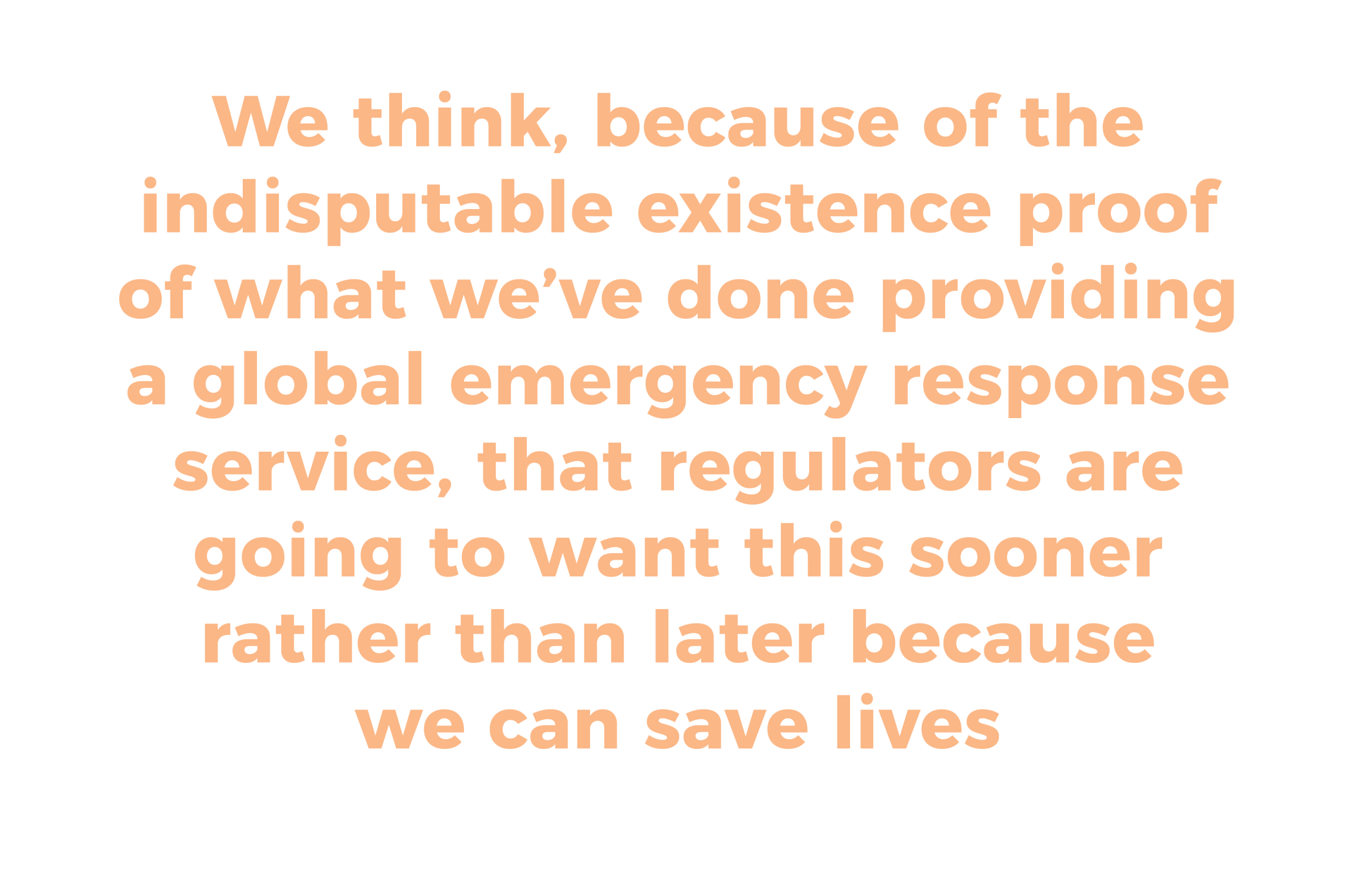 “We think, because of the indisputable existence proof of what we’ve done providing a global emergency response service, that regulators are going to want this sooner rather than later because we can save lives,” Miller said.