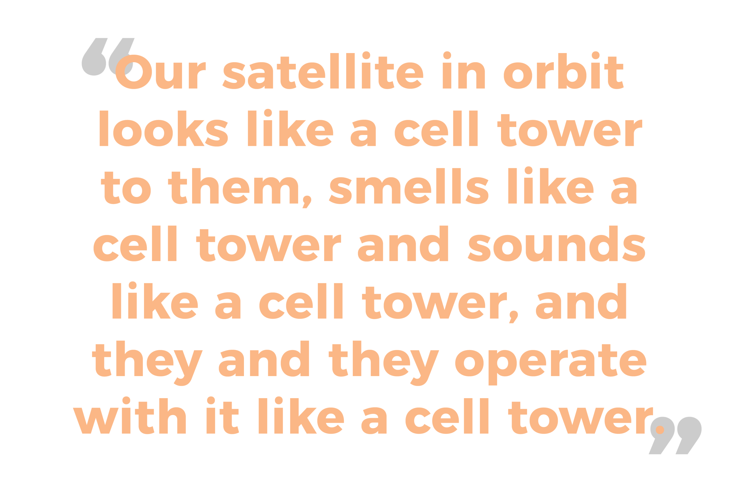 “Our technology basically takes the satellite and turns it into a standard ordinary cell tower from the perspective of everybody’s phone in their pocket, the mobile phone they love and take with them everywhere,” Miller said. “Our satellite in orbit looks like a cell tower to them, smells like a cell tower and sounds like a cell tower, and they and they operate with it like a cell tower.