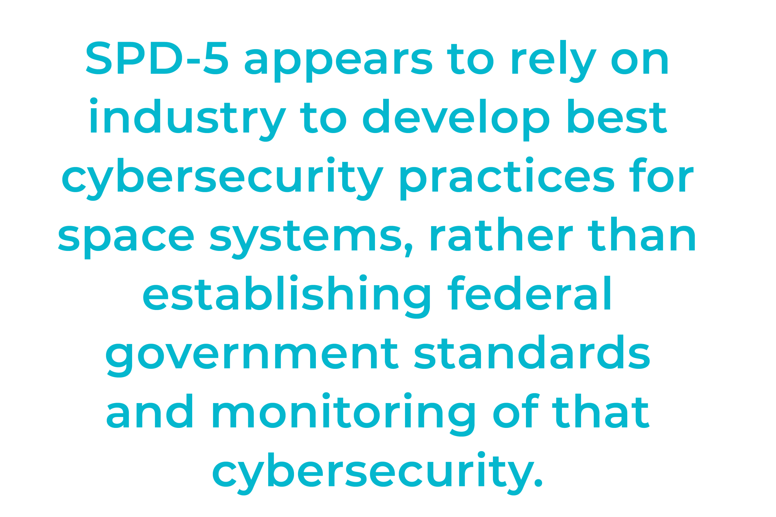 SPD-5 appears to rely on industry to develop best cybersecurity practices for space systems, rather than establishing federal government standards and monitoring of that cybersecurity.