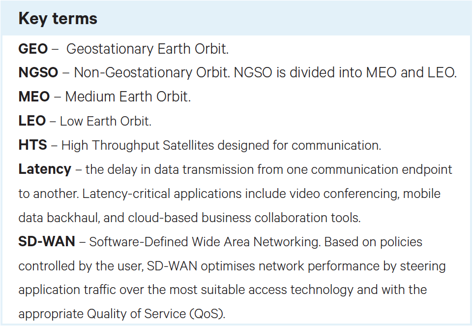 MEO satellites by contrast are an established and proven solution, already delivering reliable high-bandwidth communication. With the implementation of SD-WAN, data paths can be automatically switched between MEO, GEO, and terrestrial networks to match application needs, provide resilience, or increase coverage. Rather than being limited by a single altitude, this type of adaptive technology empowers telcos, mobile operators, and large organisations to capitalise on the merits of these two tried-and-tested orbit classes.