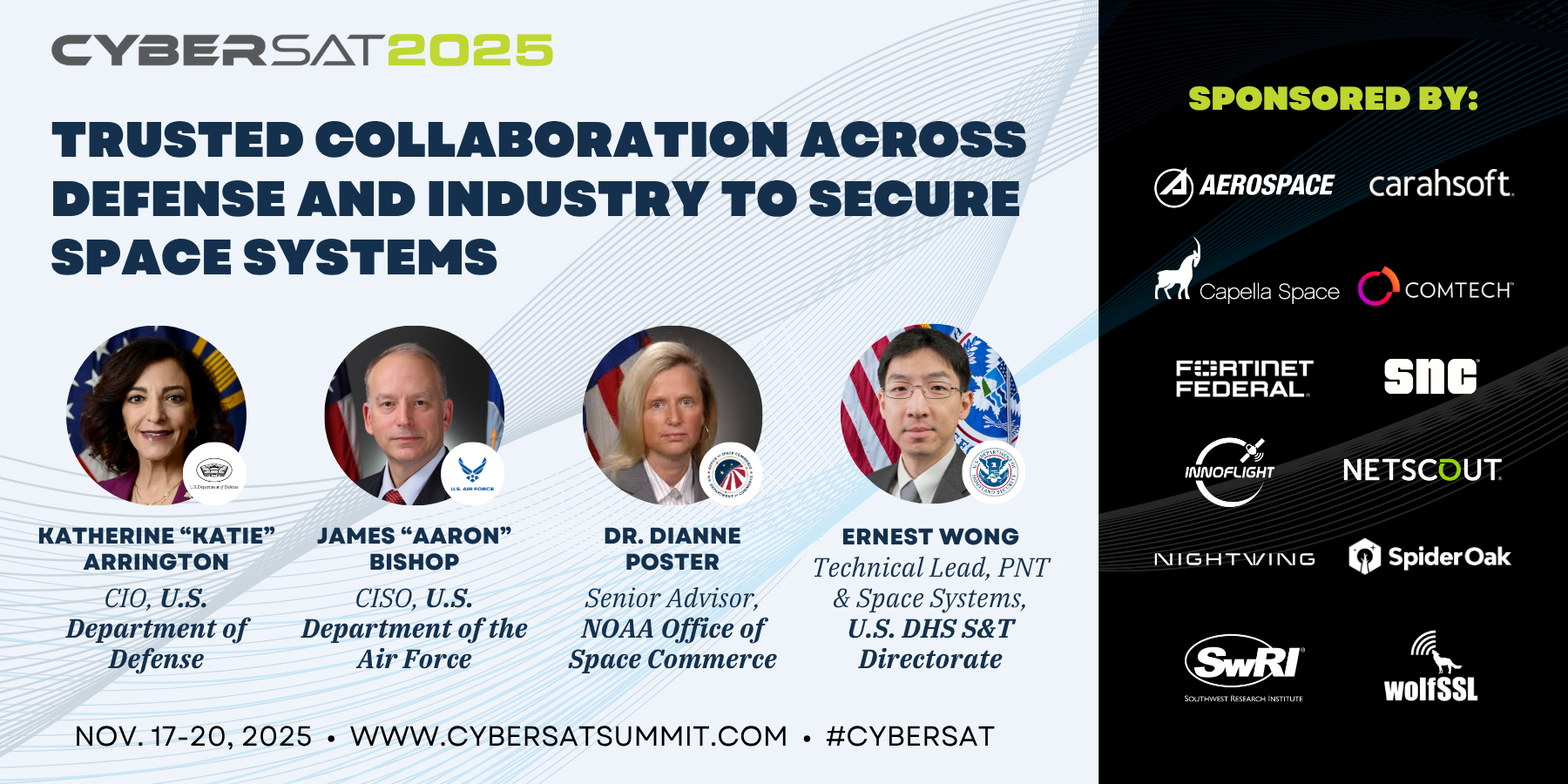 The CyberSat 2025 agenda is quickly taking shape, with 22+ speakers confirmed across the Unclassified and Classified programs — including experts from USSF, DARPA, NRO, DOD, NOAA, NASA, NSA, and DHS. Track 2 agenda is also live, with new updates rolling in as speakers continue to confirm. Preview the latest updates here.