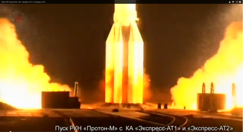 Snapshot of a video of the dual launch of the Express AT1 and Express AT2 satellites, from Baikonur Cosmodrome in Kazakhstan. Photo: Roscosmos