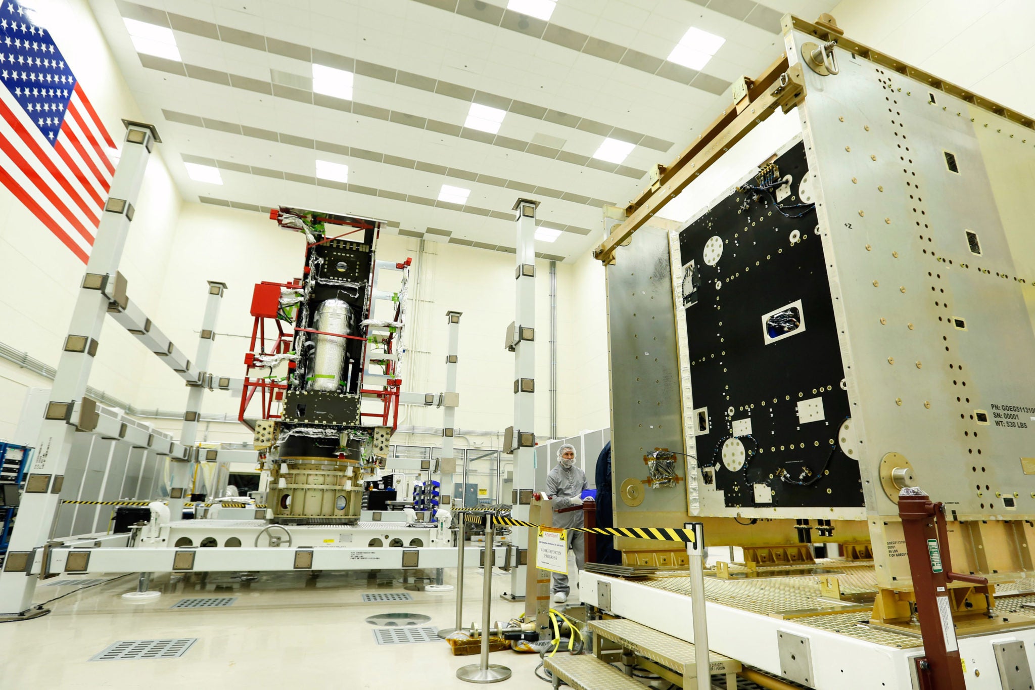 The Propulsion Module (left) and System Module (right) in Lockheed Martin’s cleanroom, where they will undergo integration testing. Photo: Lockheed Martin