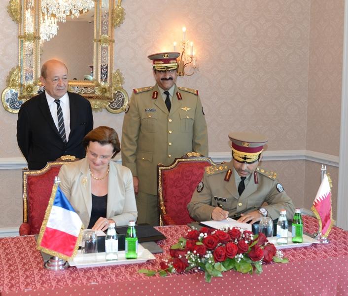 From left to right: Jean-Yves Le Drian, French minister of defense; Pascale Sourisse, SEVP international development for Thales; Major General Hamad Bin Ali Al Attiyah, Qatar minister of state for defense affairs; Eng. Abdulaziz Falah Al-Dosari assistant for technology to the minister of state for defense affairs. Photo: Thales