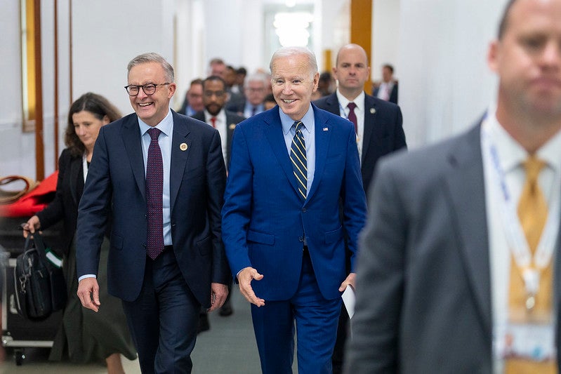 President Joe Biden and Australian Prime Minister Anthony Albanese photographed together in November 2022 in Cambodia. Official White House Photo by Adam Schultz