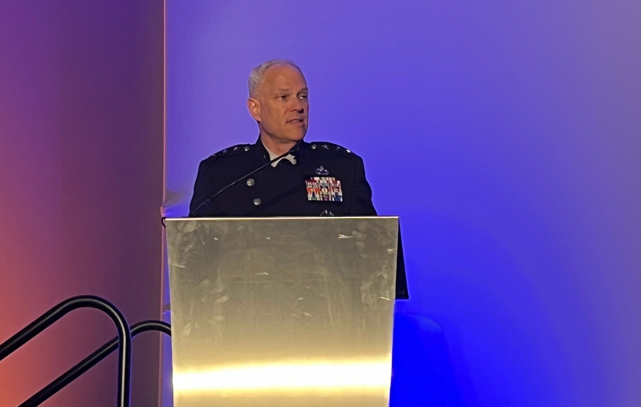 Lt. Gen. Philip Garrant, Commander of Space Systems Command, speaking at CyberSat in Reston, Virginia, on Nov. 19. Photo: Via Satellite