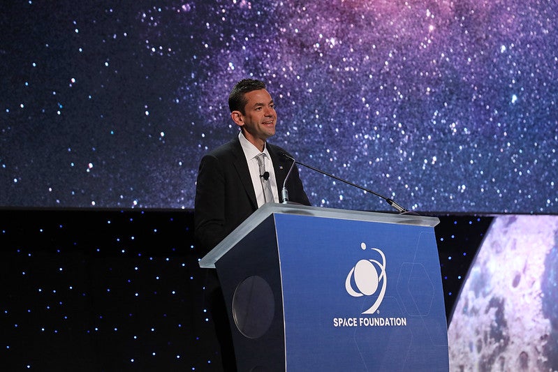 NASA Administrator Jared Isaacman speaks at Space Symposium on April 14. Photo: Space Foundation