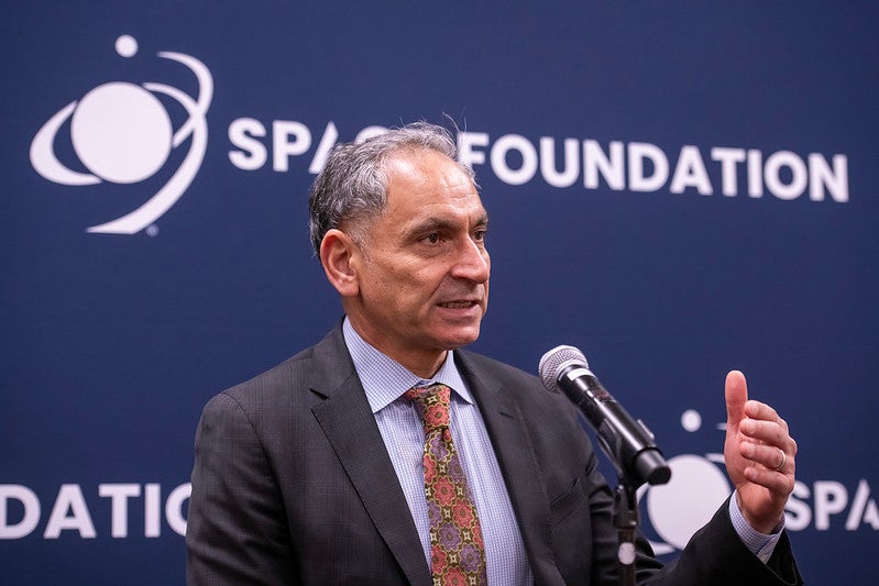 GP Sandhoo, acting director of the Space Development Agency speaks at a media roundtable at Space Symposium. Photo: Space Foundation