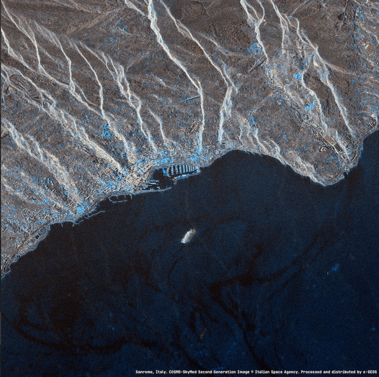 Sanremo, Italy. Cosmo-SkyMed Second Generation Image © Italian Space Agency. Processed and distributed by e-GEOS.