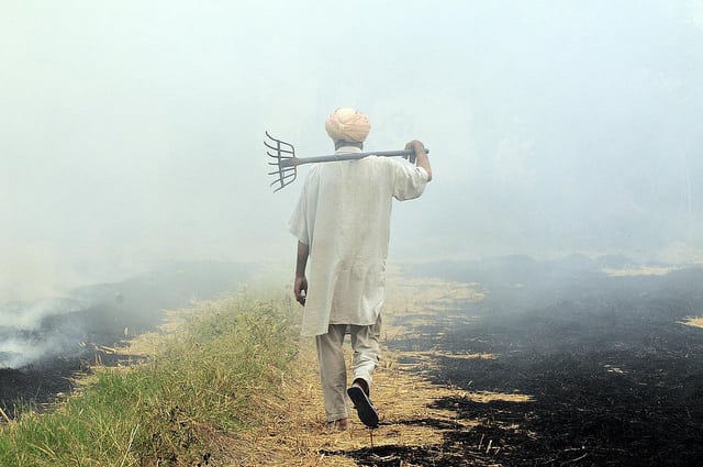 Burning of rice residues in Southeast Punjab, India, prior to the wheat season. Photo: Flickr/CIAT.
