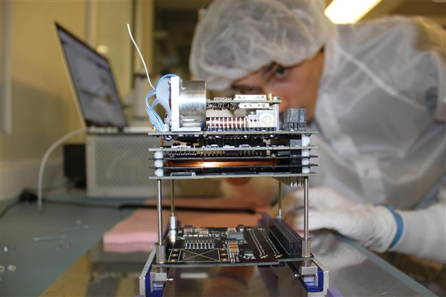 Electrical engineering student at the University of Alberta, building the Ex-Alta 1 CubeSat as part of the university’s participation in the QB50 mission. Photo Credit: Charles Nokes, University of Alberta