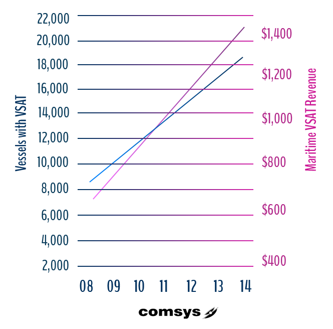 Comsys states it this way: “The single largest issue that all VSAT operators have faced over the last 10 years has been the rising price and lack of availability of satellite capacity. Those operators specializing in maritime VSAT services are no different and, in some ways, have an even greater problem.”