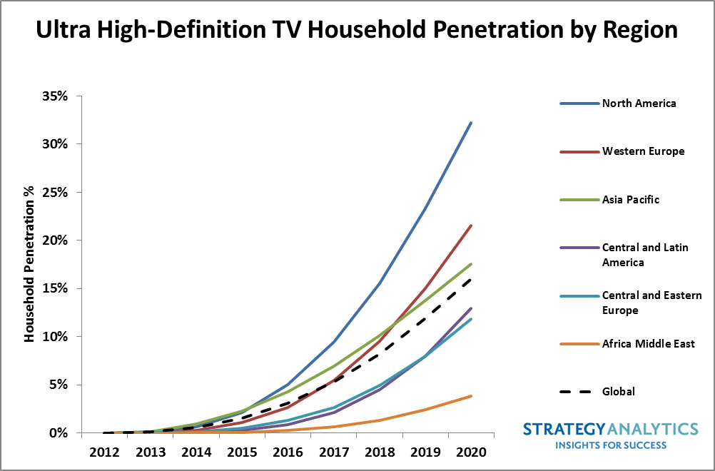 “We are finding that OTT providers and Smart TV manufacturers are enabling early adoption of 4K Ultra-HD TV via the Internet, focusing on streaming or downloadable content as they build up their libraries,” he says. “Given that filming in 4K is still in the nascent stages, it will take time to develop a large enough library to launch actual channels in 4K. Based on that, we do not foresee a visible uptake in 4K until 2016 at the earliest, when we believe that a few linear channels might begin to appear globally.”