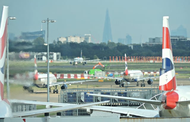 The Shard and other London skyline landmarks such as One Canada Square at Canary Wharf are visible from Heathrow Airport’s Terminal 5 on a clear day. Photo: Thomas Nugent
