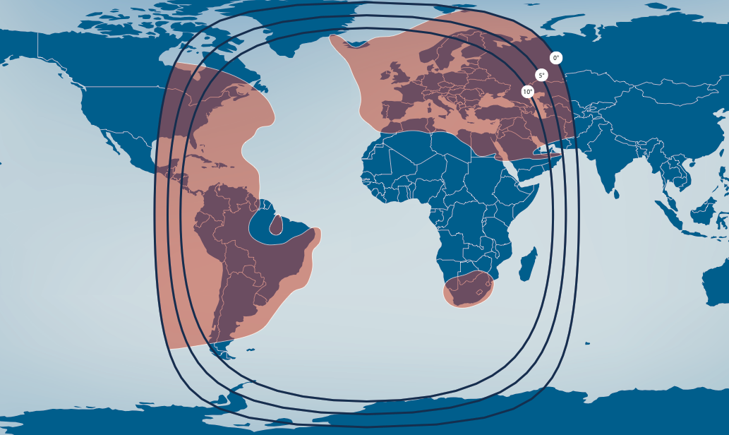 In addition to optimizing coverage of the regions now served by Telstar 12, Telstar 12 Vantage provides new, high capacity coverage of Brazil and East Africa and builds on Telesat’s position in mobility and energy services with new coverage of the Caribbean, Mediterranean, South Atlantic and North Sea from its central orbital location of 15 degrees west.
