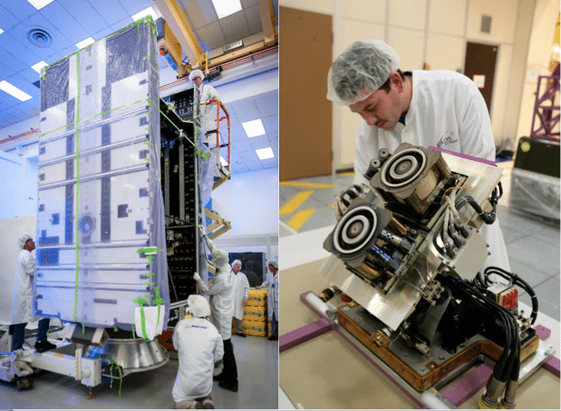 Today, Airbus has seven hybrid satellites that use electric propulsion in orbit for station keeping, and three more being built. ABS 3A and Satmex 7, Boeing’s first two all-electric satellites, are scheduled to launch on SpaceX’s Falcon 9 in 2015. According to Chesley, Boeing is working on further streamlining the manufacturing process to shorten the production time of all-electric satellites.