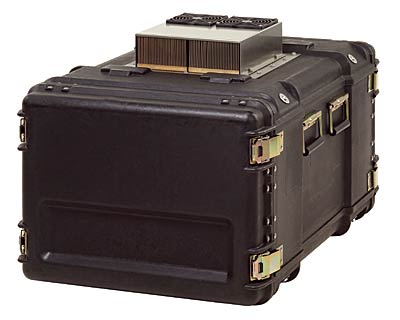 Rack case manufacturers like SKB, Pelican, Gator and Zarges all offer rack cases in various sizes, both with and without shock and vibration protection and isolation built in. Always avoid the less expensive portable rack cases that have the rack hard-mounted to the inside of the case. With flyaway satellite antenna cases, every jolt and jar that the case suffers could be transmitted directly to your electronics unless there is sufficient vibration and shock protection built in. Always be sure to select a portable electronics case with a rack that is shock-mounted.