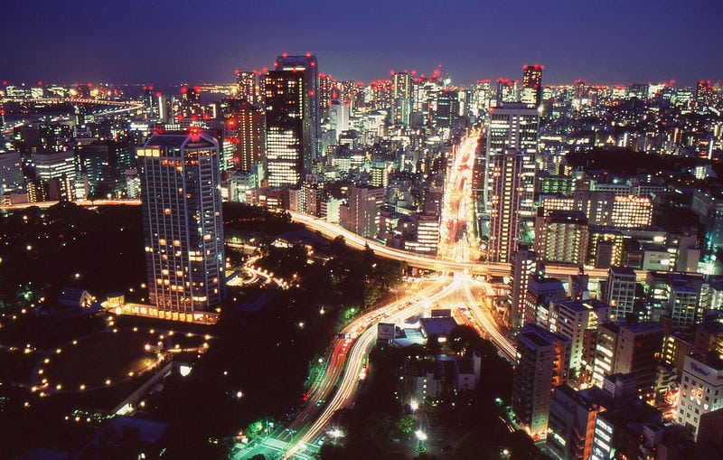 Tokyo streets by night shot from Tokyo Tower. Photo: Nalilord/Wikimedia Commons, available under a Creative Commons ShareAlike 3.0 Unported license.