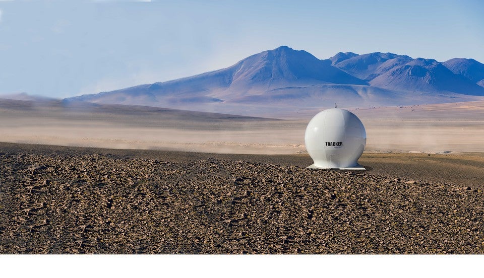 A rendering of Cobham Satcom’s Tracker antenna in a desert. Photo: Cobham Satcom