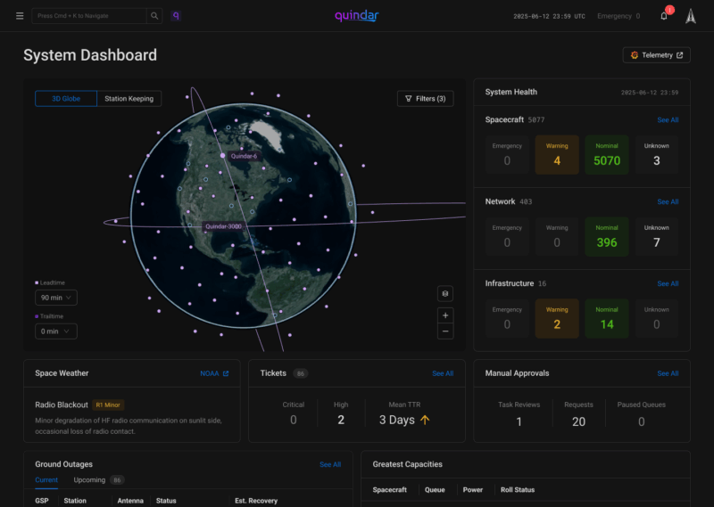 Quindar aims to address the challenges complex modern space missions face by providing a common operating picture that automates mission planning, execution, and monitoring. This aims to eliminate the need for operators to build and maintain bespoke mission control software or standup a dedicated internal team as missions evolve and scale.