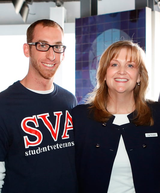 Matt Feger, director of development for Student Veterans of America and Pam Wickham, vice president of communications for Raytheon, during the announcement of the partnership.